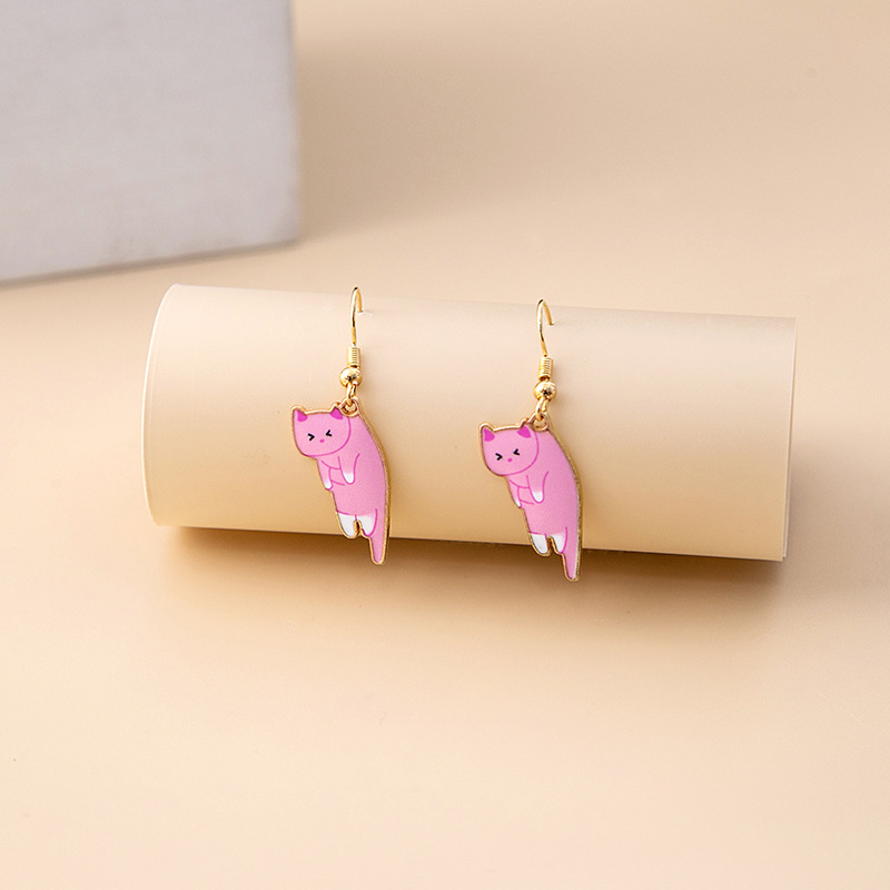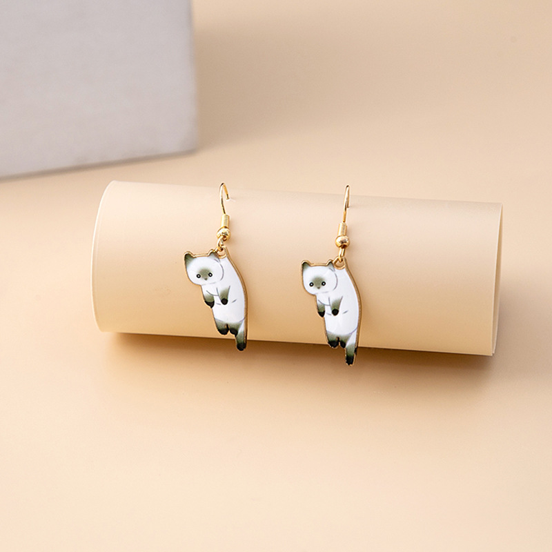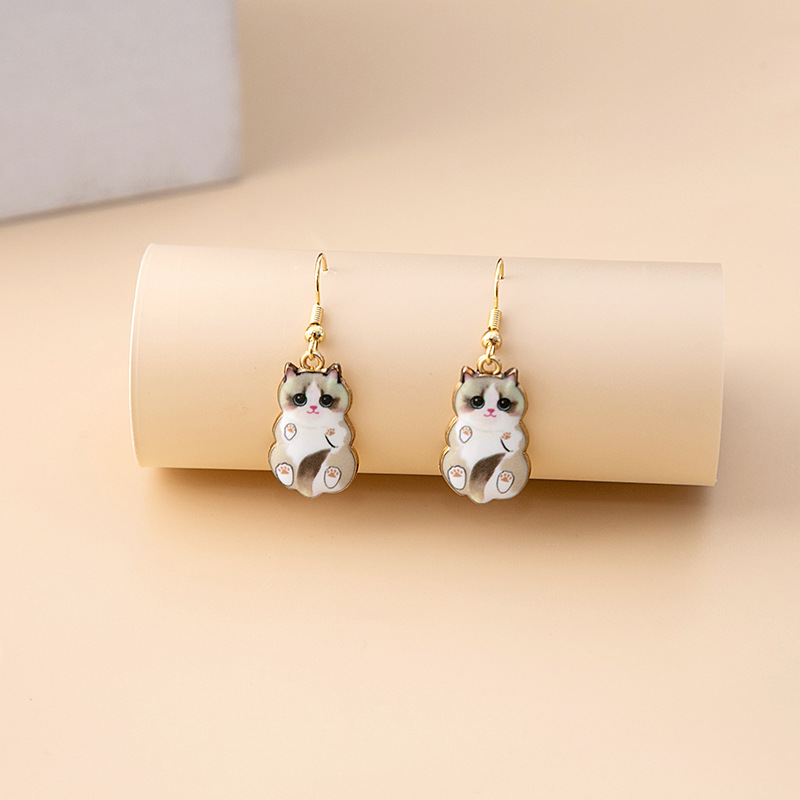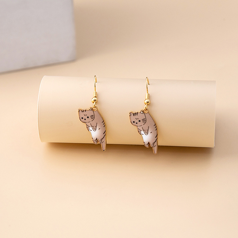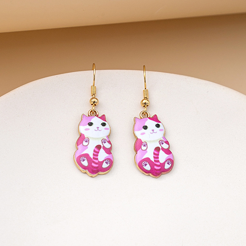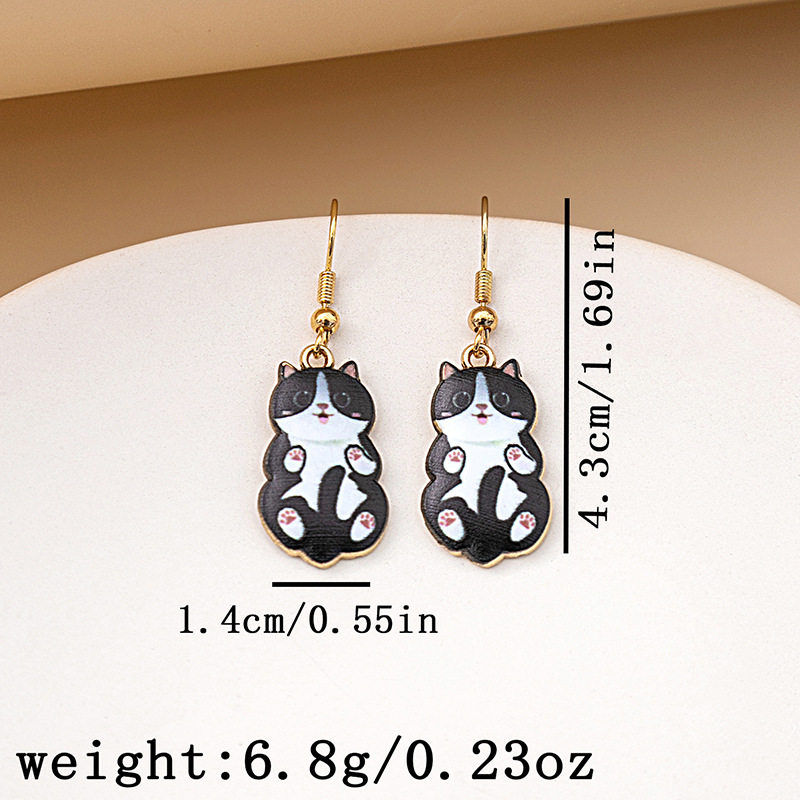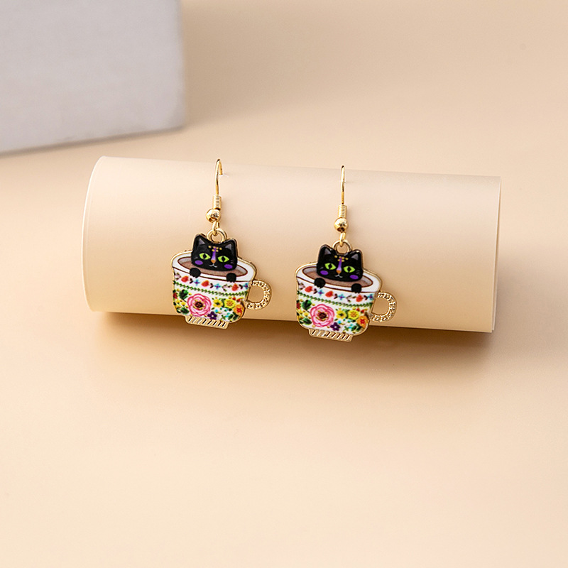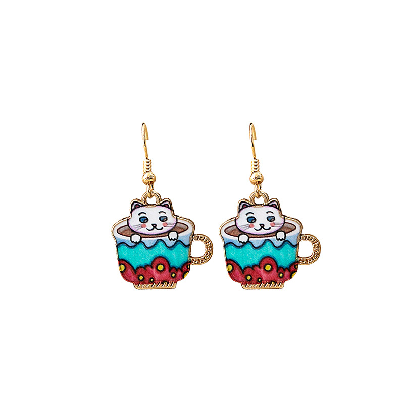 Pendientes de gato lindos de dibujos animados de personalidad creativa con pendientes de taza de té impresos