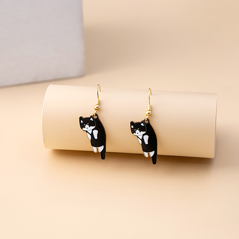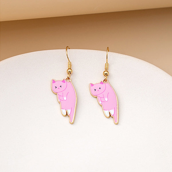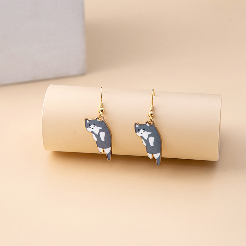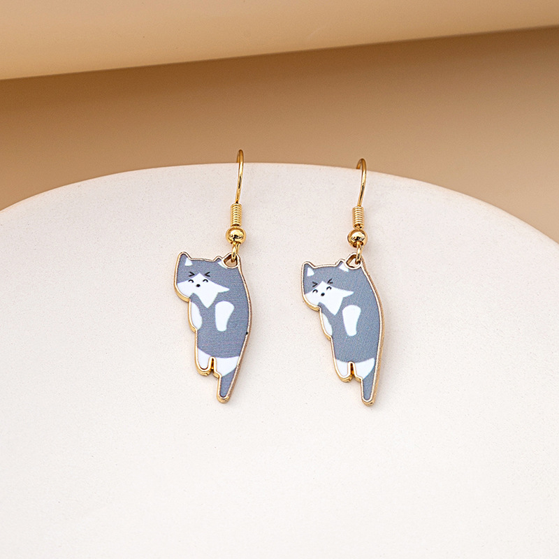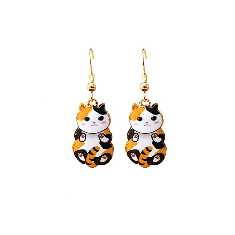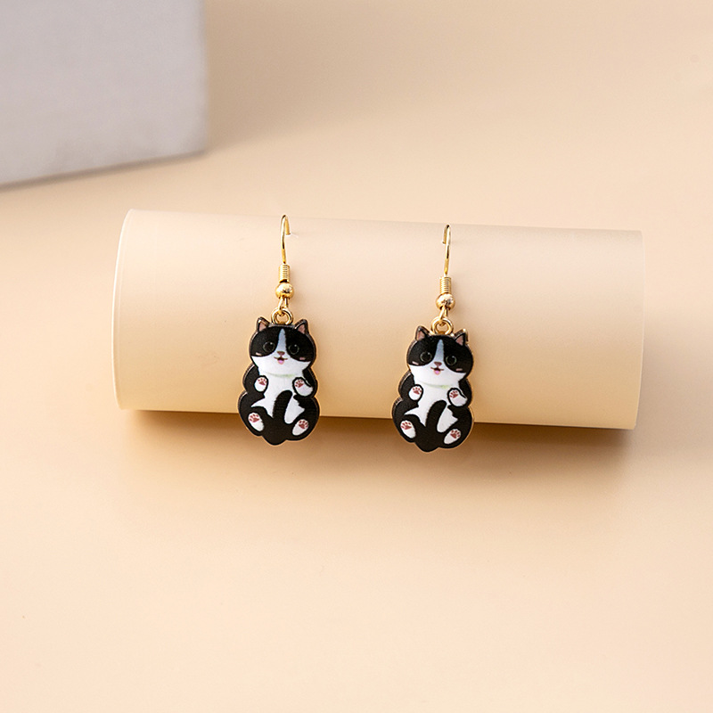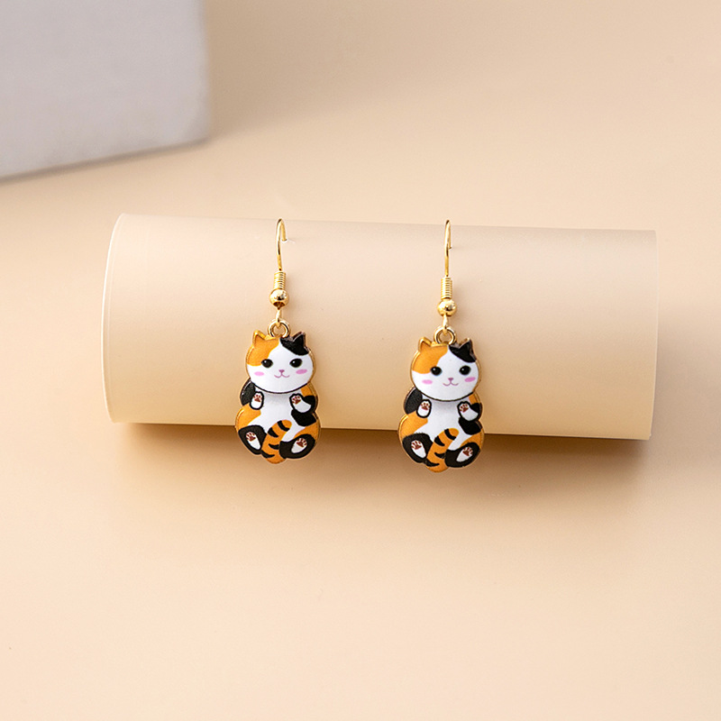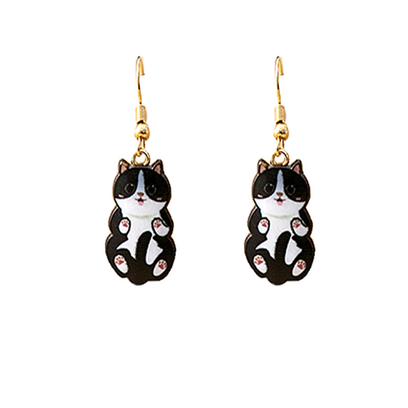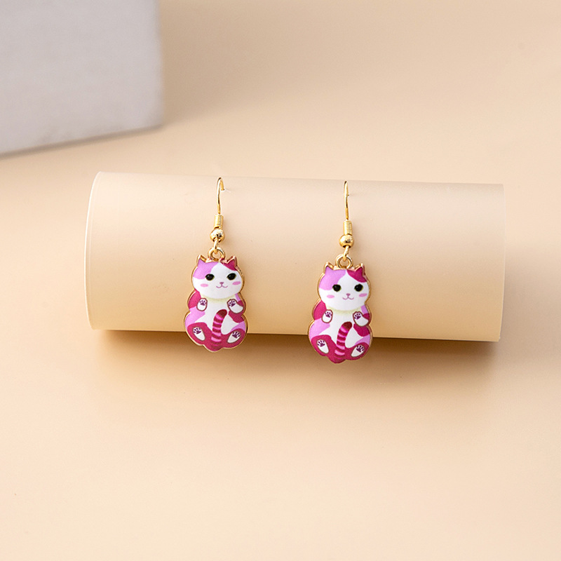Pendientes de gato lindos de dibujos animados de personalidad creativa con pendientes de taza de té impresos