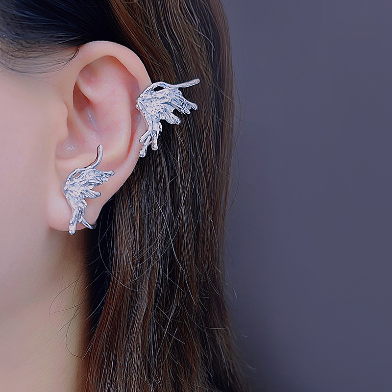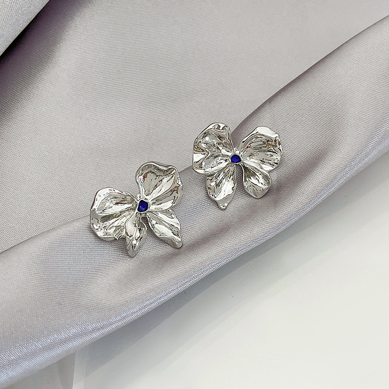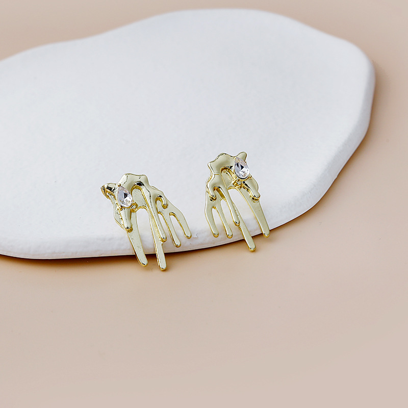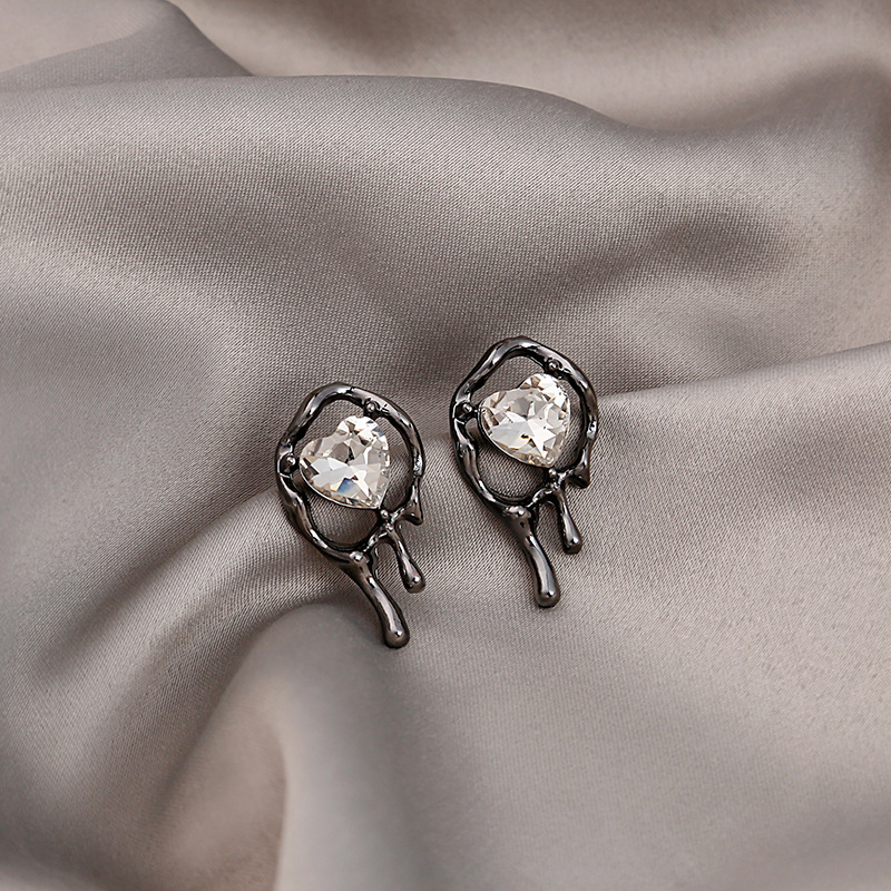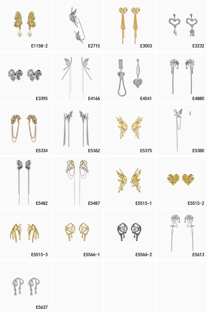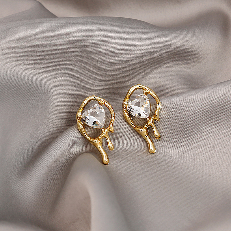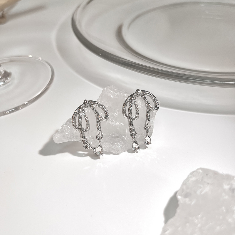 Pendientes largos asimétricos con diamantes brillantes y mariposas de metal líquido irregular