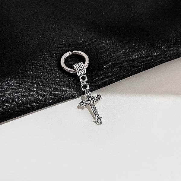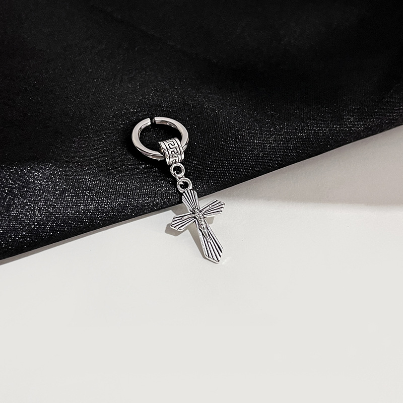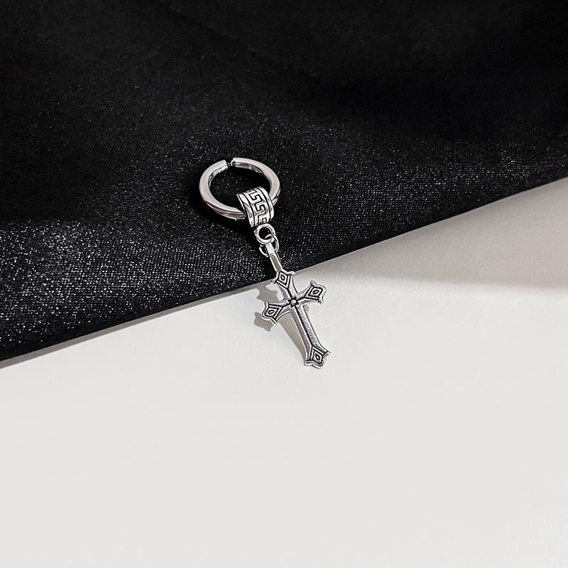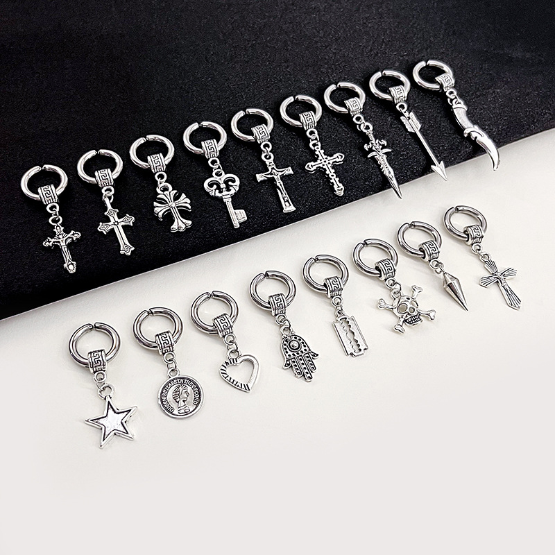 Pendientes retro con forma de cruz de acero antioxidante con cabeza humana en forma de estrella para mujer