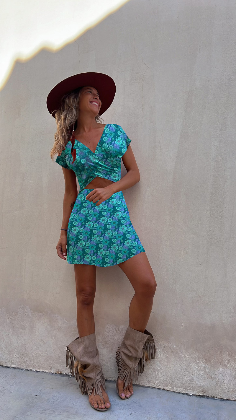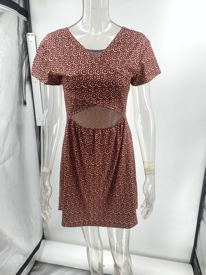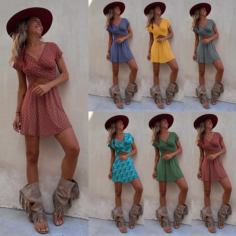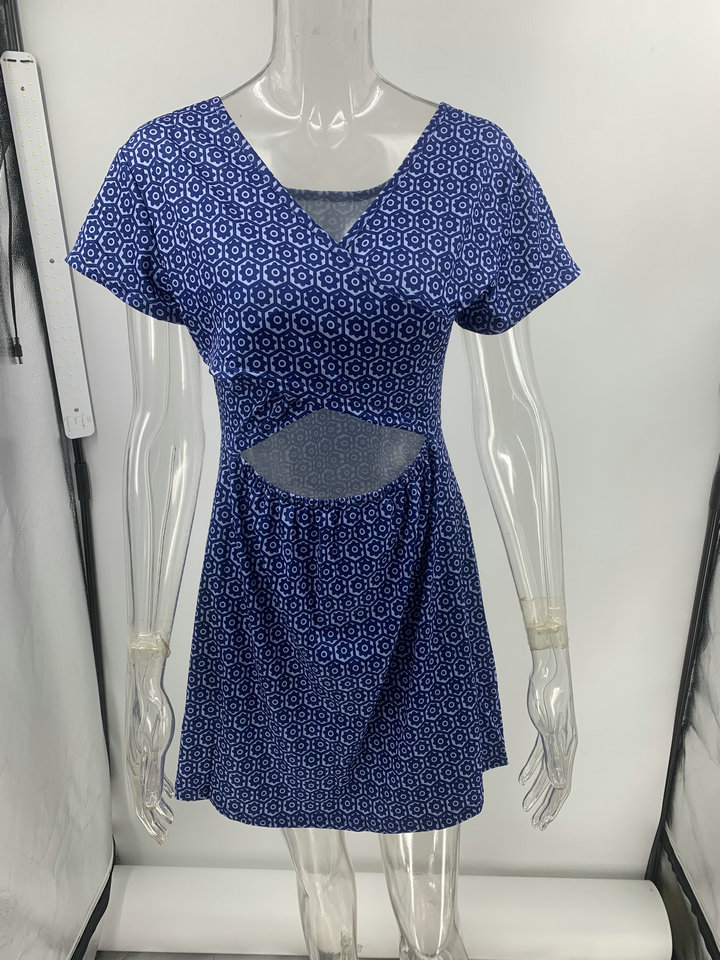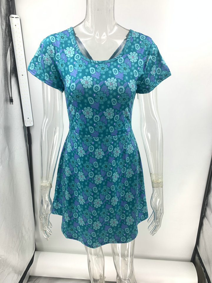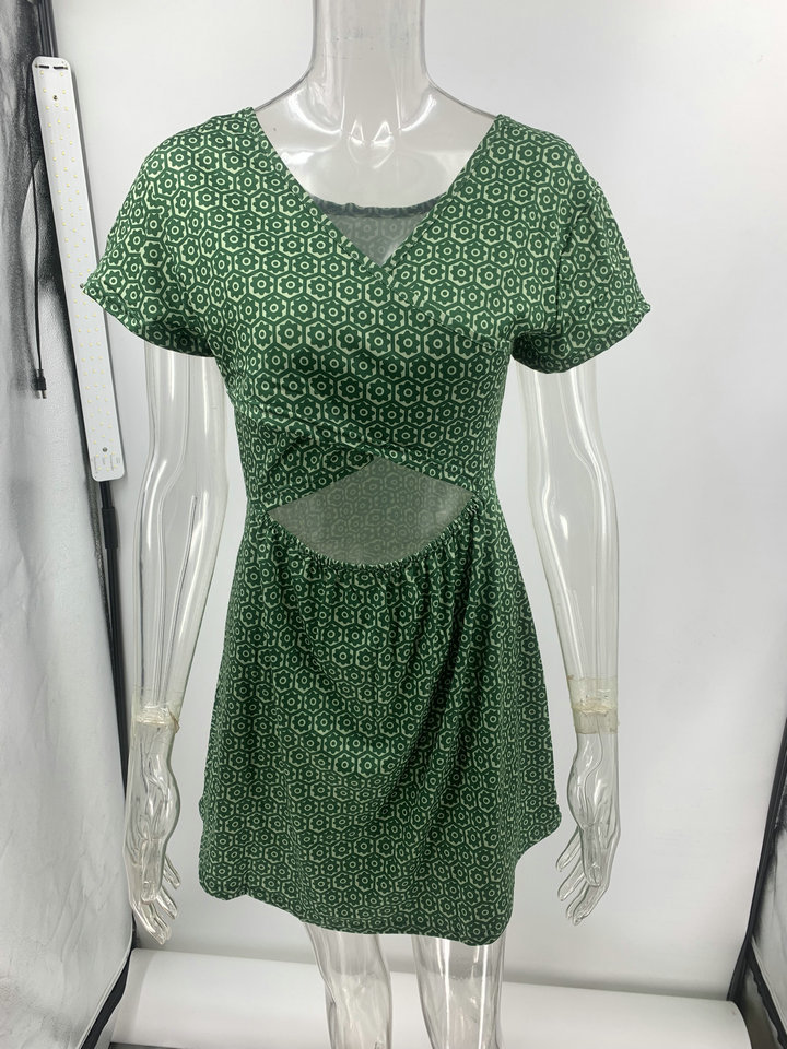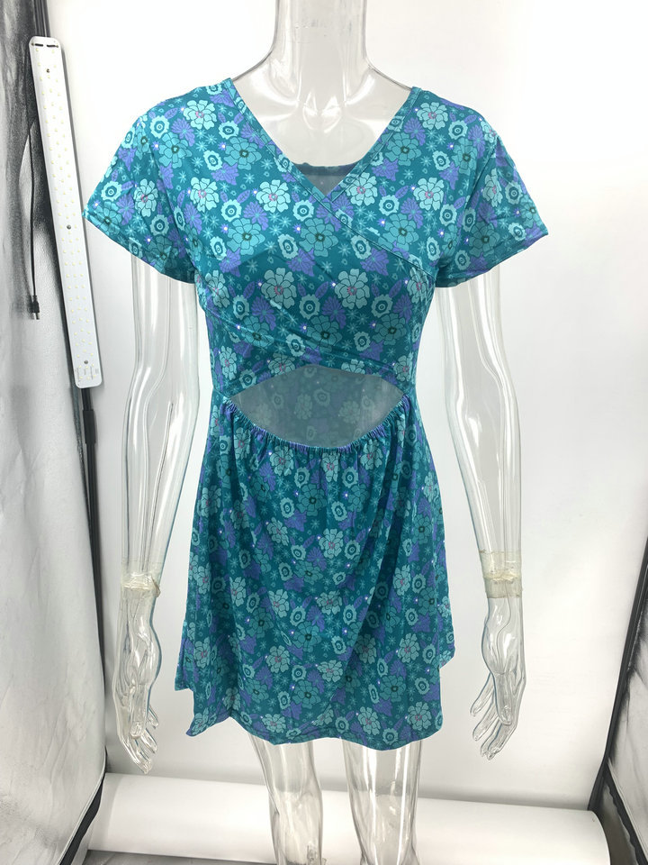 Vestido de longitud media con cuello en V sin mangas y estampado floral de verano