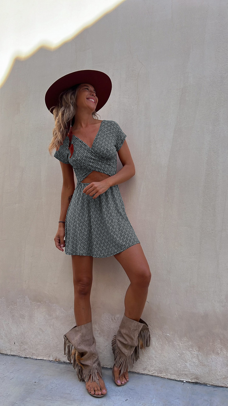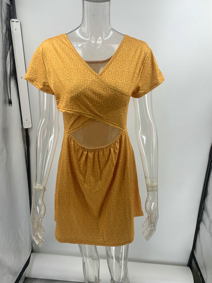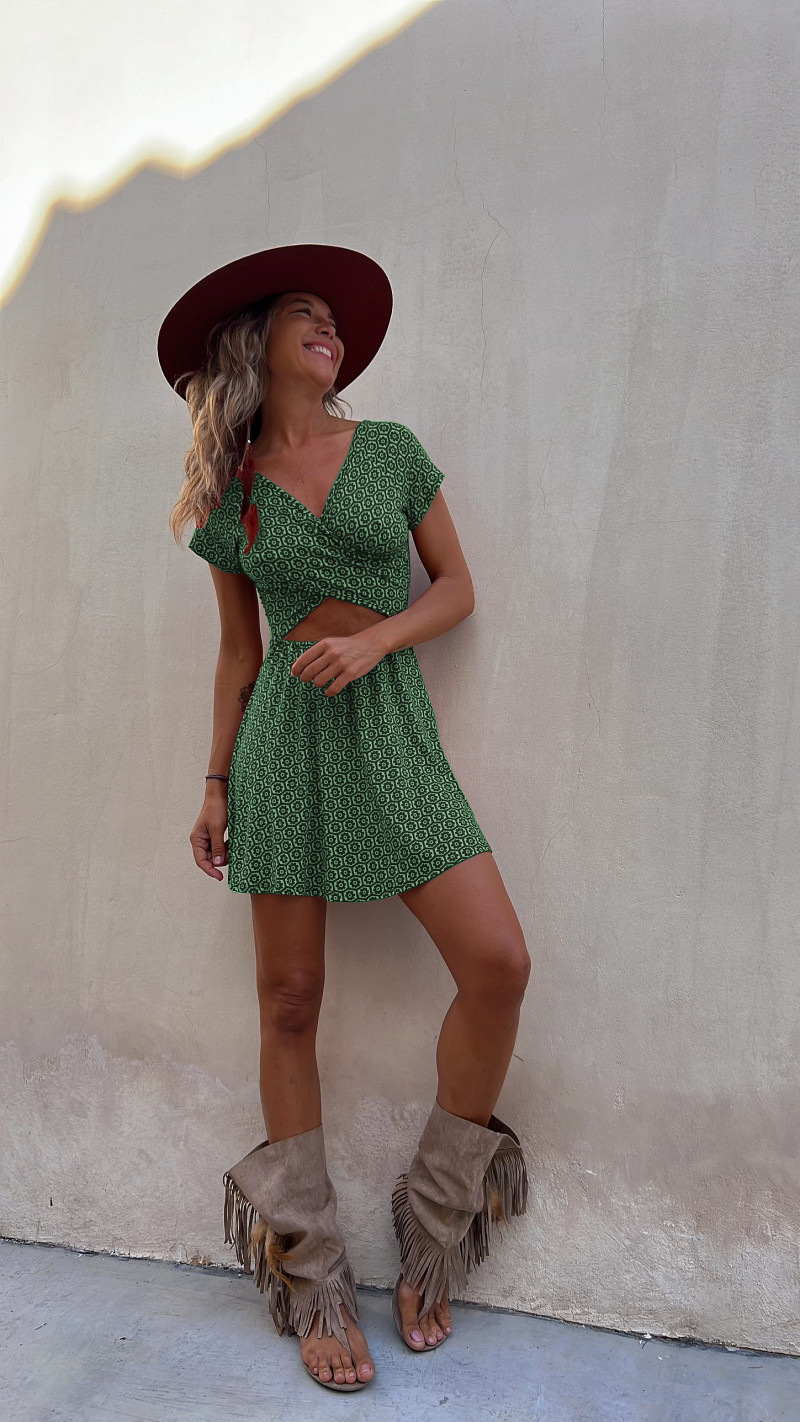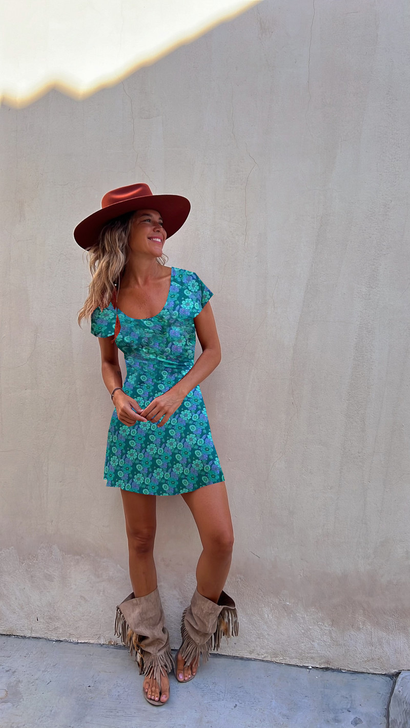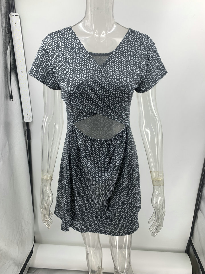 Vestido de longitud media con cuello en V sin mangas y estampado floral de verano