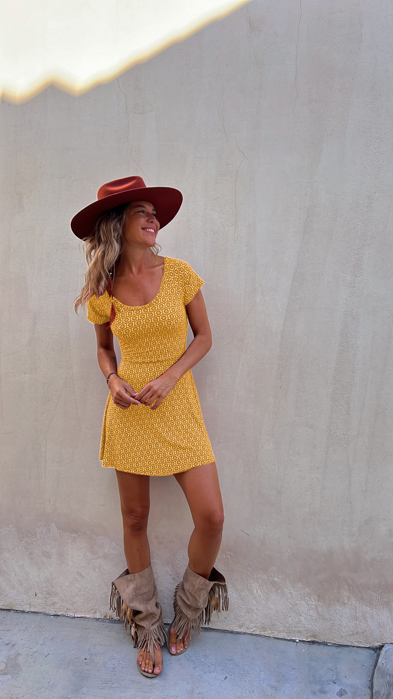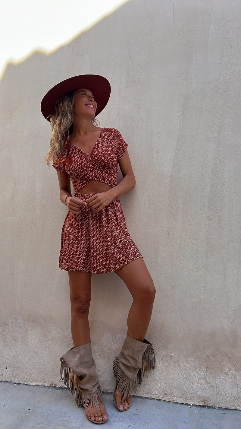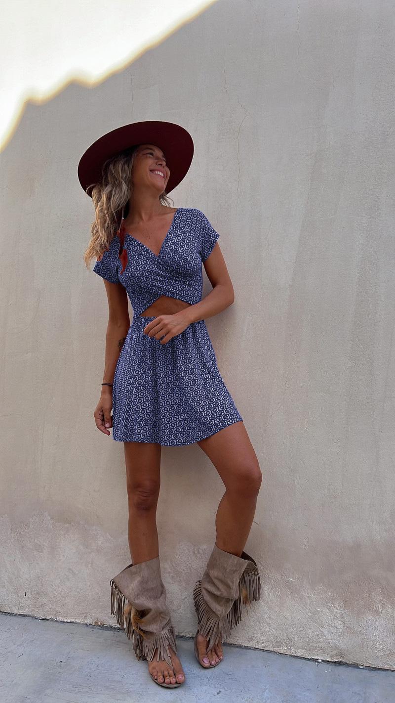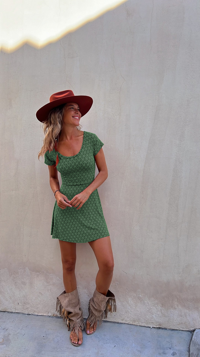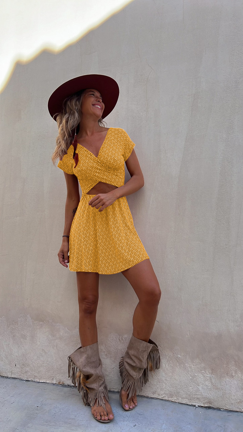 Vestido de longitud media con cuello en V sin mangas y estampado floral de verano