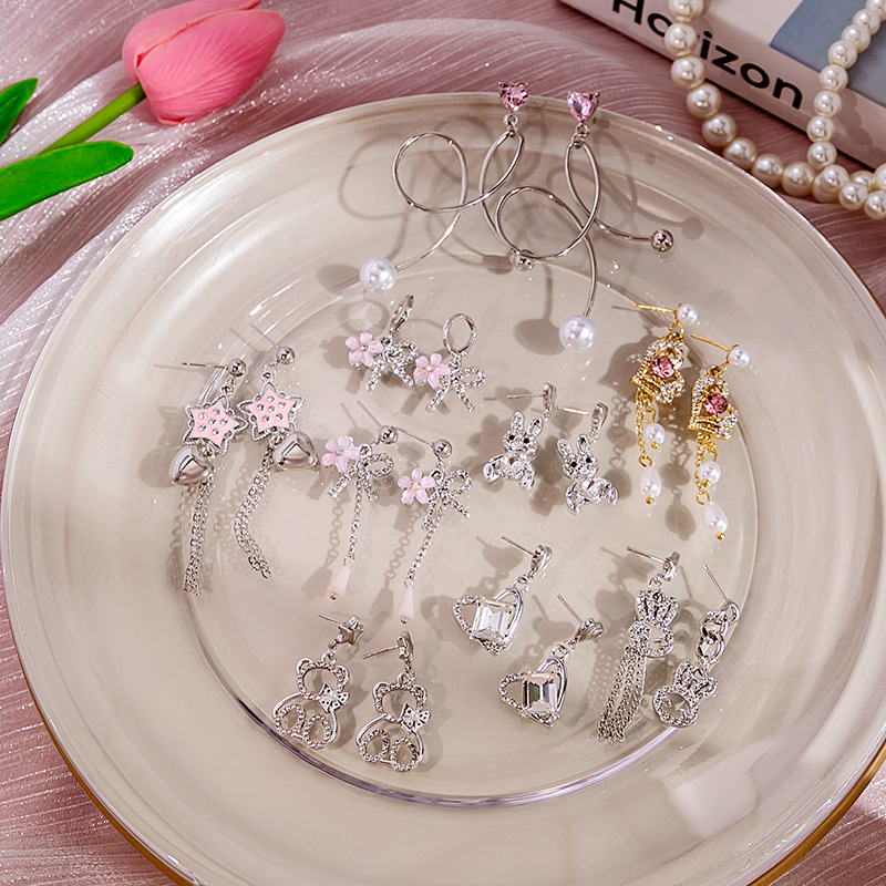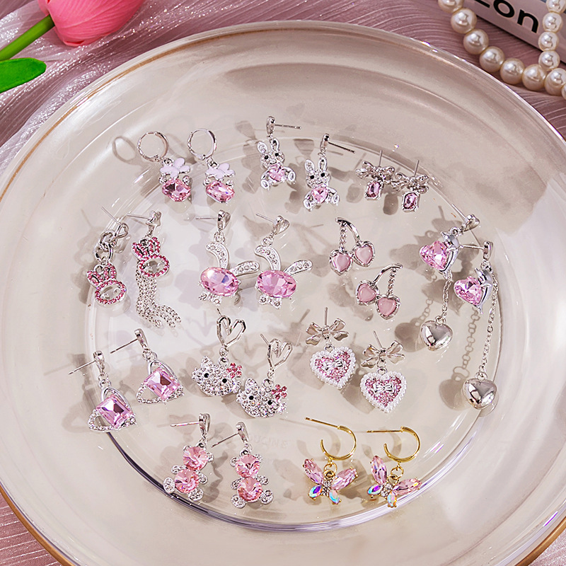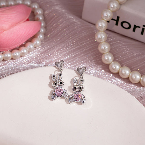Preciosos Pendientes de Plata con Animales con Diseño de Conejito, Delfín, Corazón y Gato