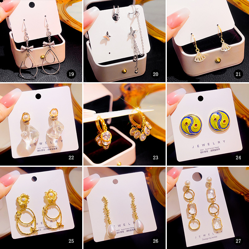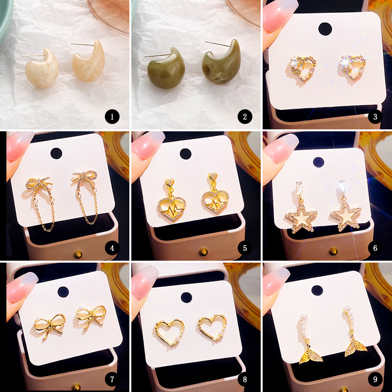 Pendientes de moda de estilo francés con elementos de aleación, diamantes de imitación, piedra lunar, perlas y estrellas
