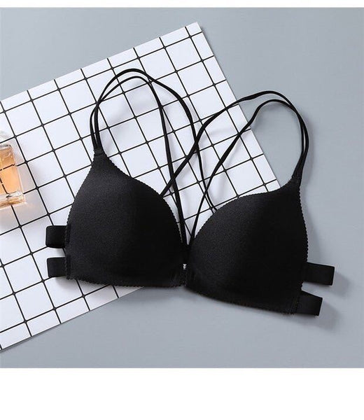 Sujetador sexy con espalda cruzada para mujer, sin anillo de acero, copa fina de poliéster y tirantes dobles fijos