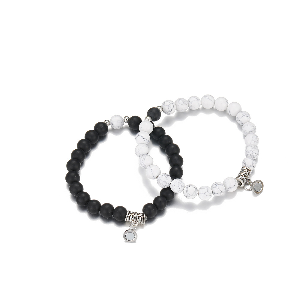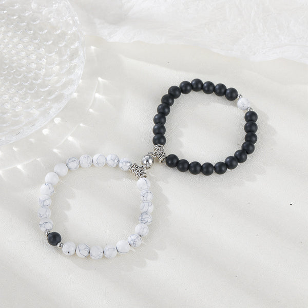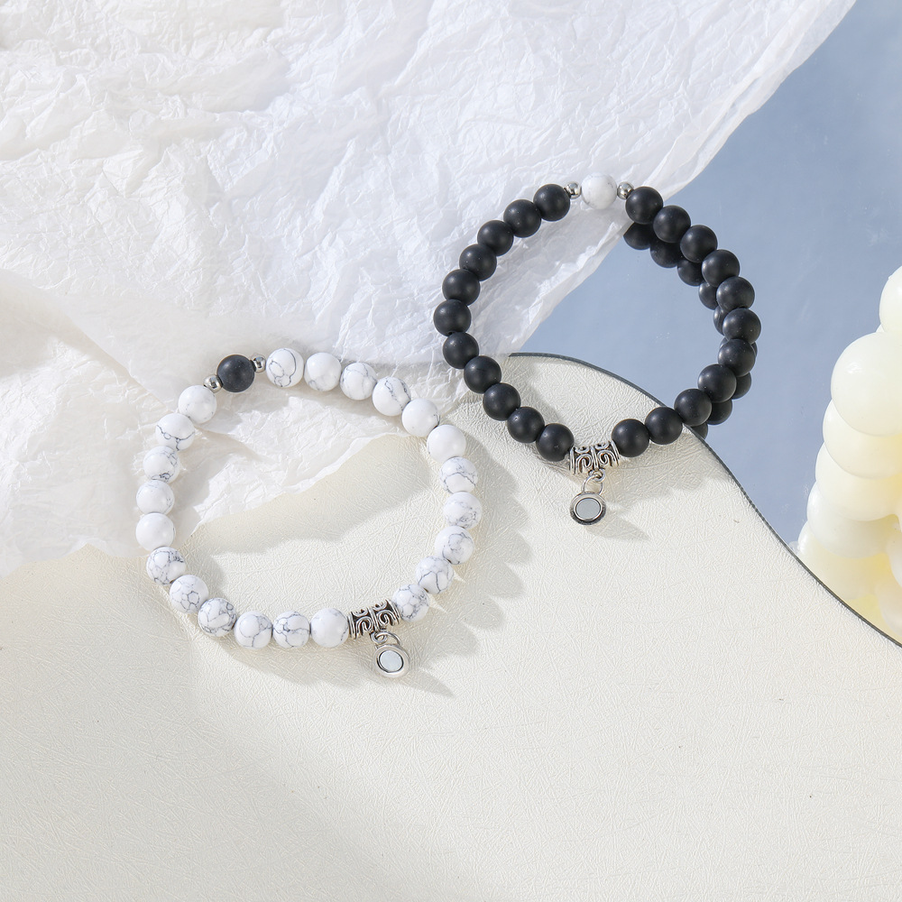 Pulsera de pareja con cuentas magnéticas en blanco y negro retro para regalo de recuerdo de viaje, 23 piezas