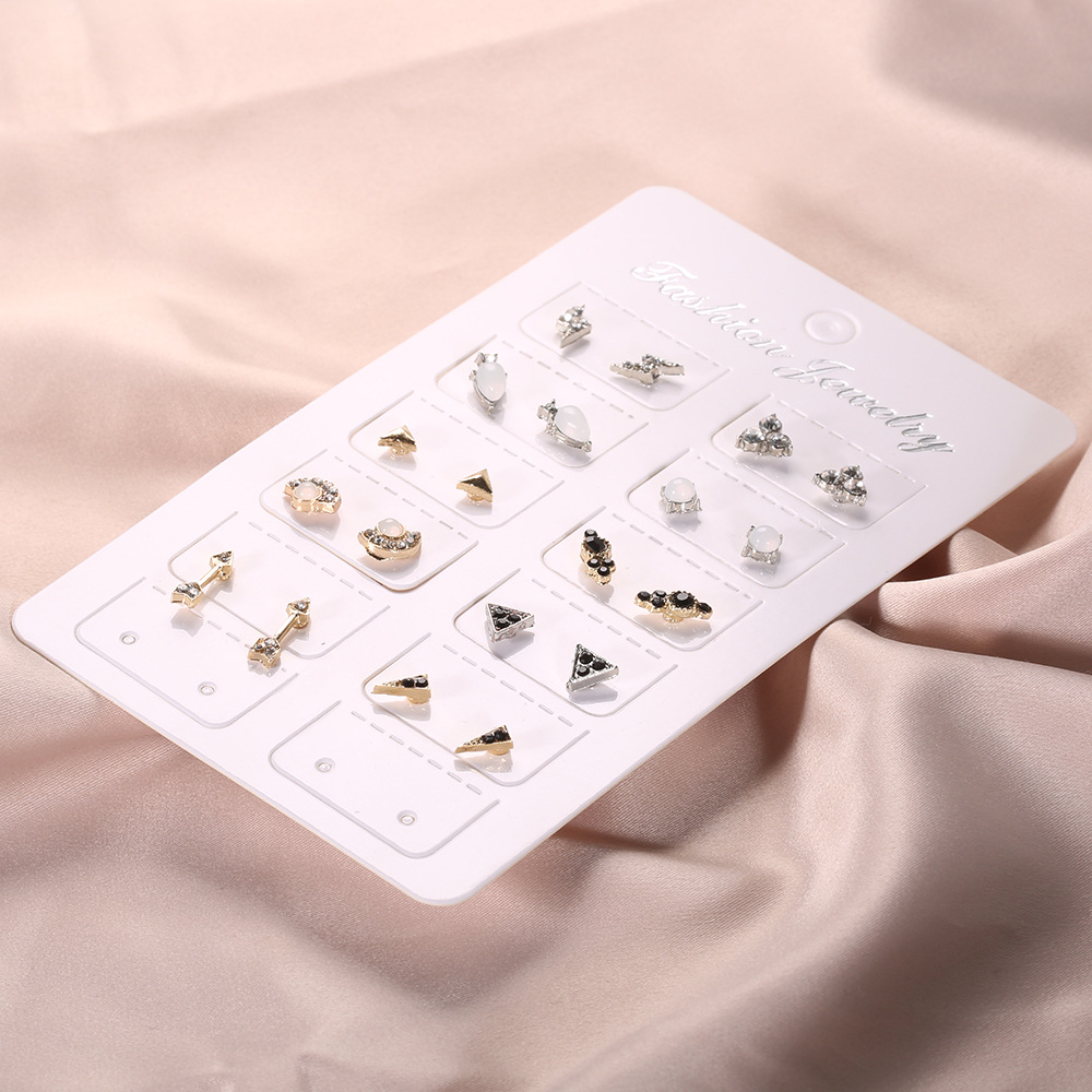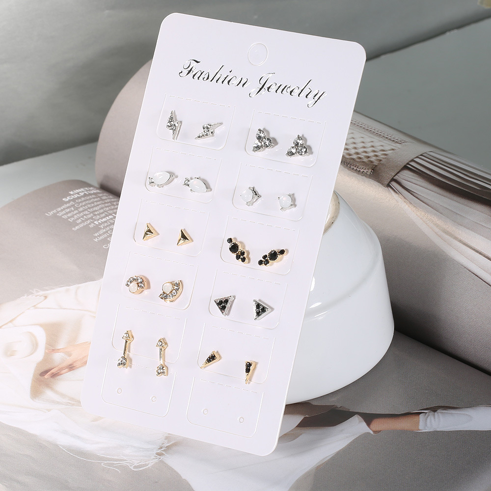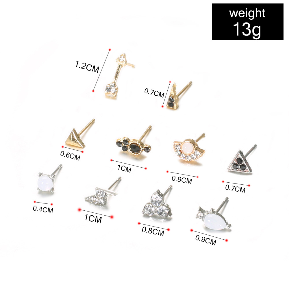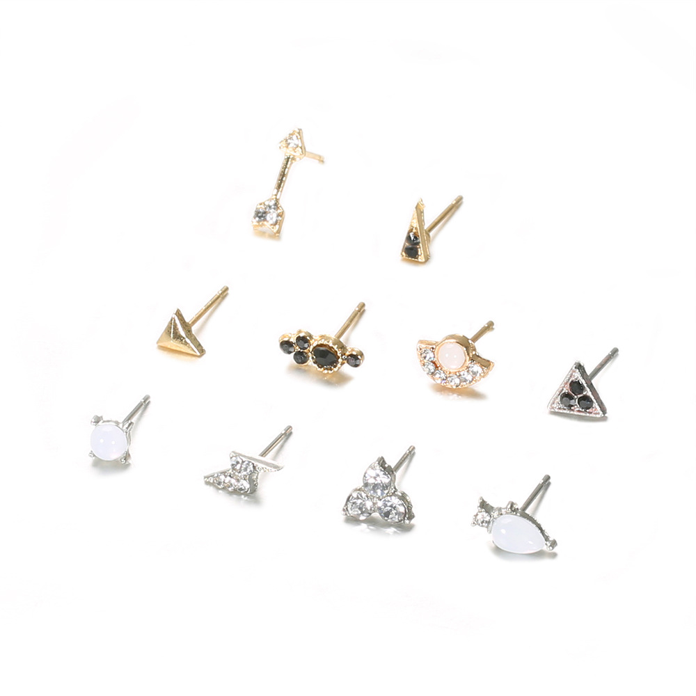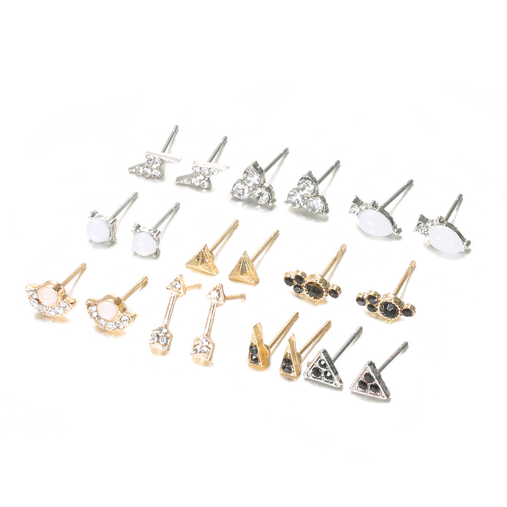 10 pares de elegantes pendientes de trébol de flecha con aleación chapada en oro y diamantes de imitación para mujer