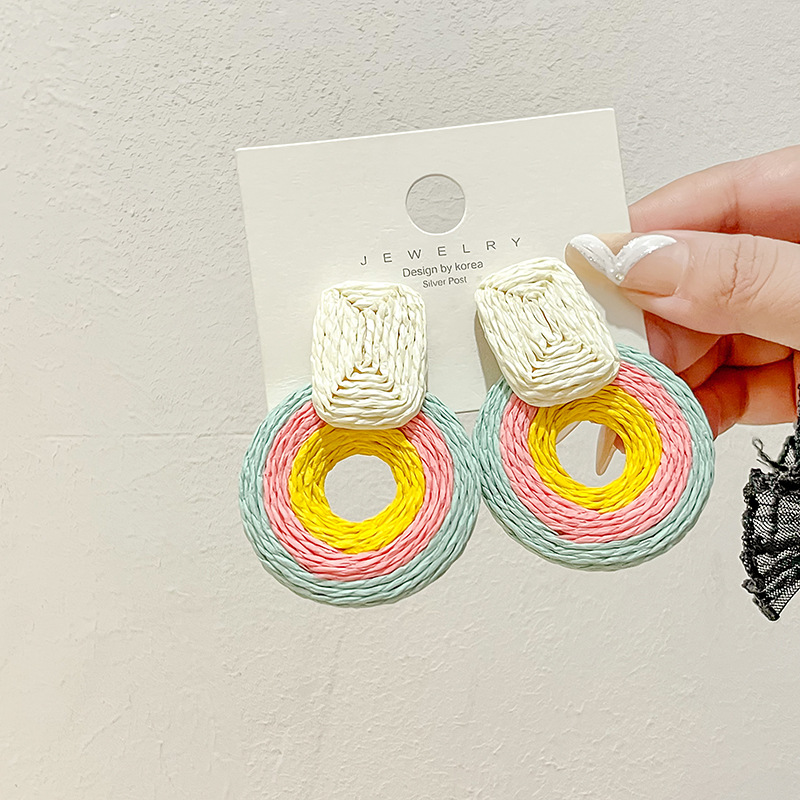 Pendientes de Plata Estilo Coreano con Forma Redonda y Diseño de Pin para Mujer
